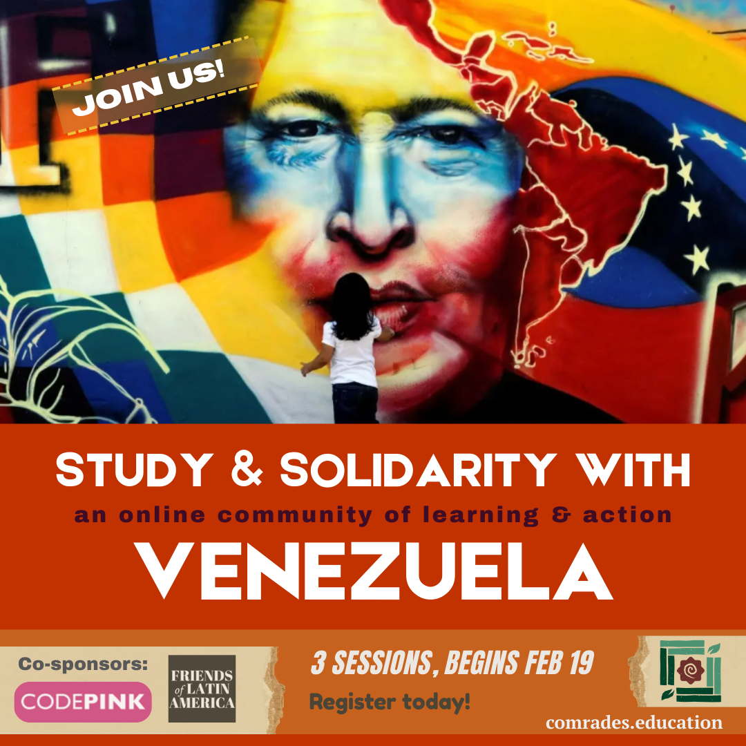 The course will be facilitated by Eleanor Hancock, Director of Comrades Education, and Juliana Barnet, an anti-imperialist educator with decades of participation in Latin American solidarity movements and close ties to grassroots Venezuelan society.